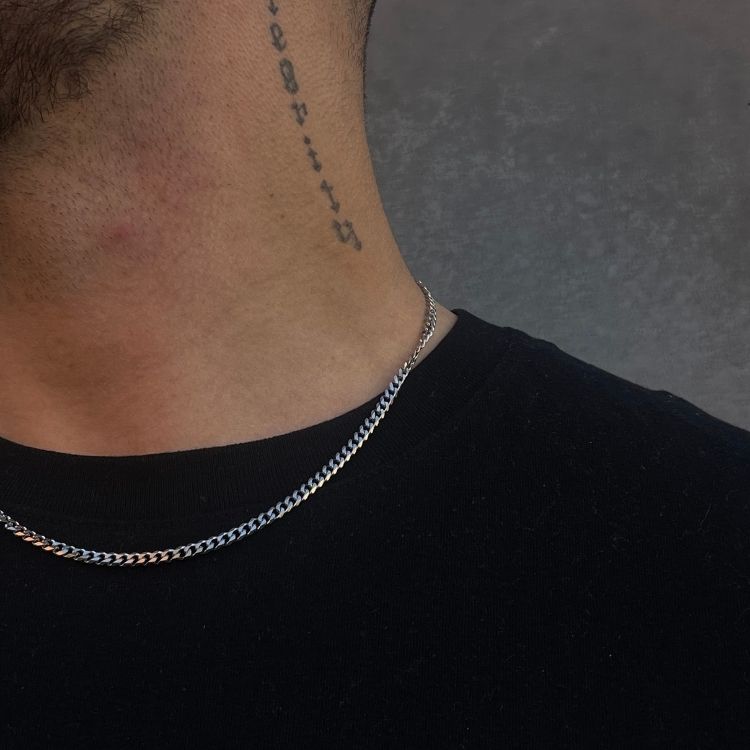 Dette smykke er lavet i rustfrit stål. Det er slidstærkt, ser superflot ud, misfarver ikke og kan godt tåle lidt vand, som fx brusebad. Rustfrit stål er også godt for dem, der lider af nikkelallergi, da meget få allergikere oplever bivirkninger eller reaktioner fra rustfrit stål.