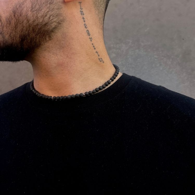 Halskæden har detaljer i rustfrit stål. Det er slidstærkt, ser superflot ud og misfarver ikke. Rustfrit stål er også godt for dem, der lider af nikkelallergi, da meget få allergikere oplever bivirkninger eller reaktioner fra rustfrit stål.